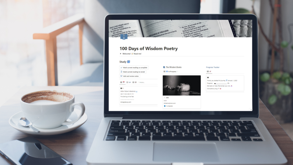 This 100-day reading plan is delivered via Notion, which is a versatile and intuitive app for productivity and note-taking. You will be able to engage with these poetic and thought-provoking texts conveniently, as you go on a journey of self-discovery and faith.